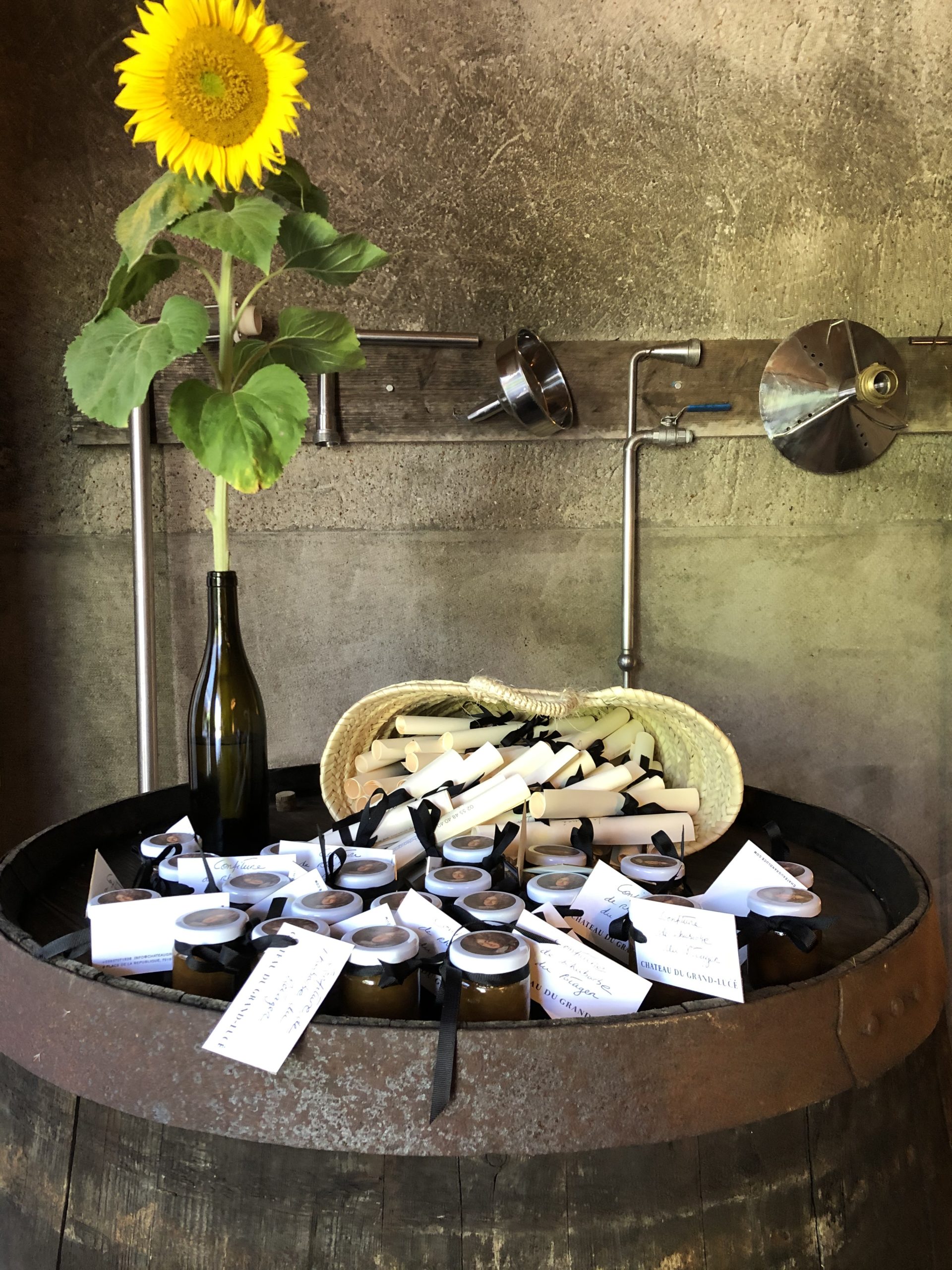 Nous avons été très attirés par son invitation reçue fin juin, qui proposait chaque samedi trois horaires pour une dégustation de ses vins avec la cuisine d’un chef dans le cadre de sa cave de Marçon 72340, Sarthe.