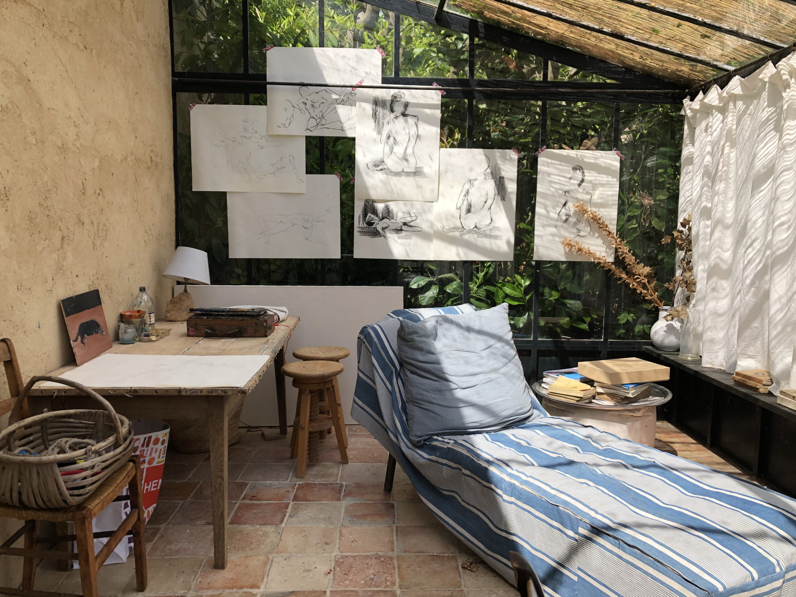 La nature, la quiétude, la présence d’un vrai atelier d’artiste bien équipé, et des ateliers des lieux en correspondance permettent des temps accompagnés et aussi en autonomie.